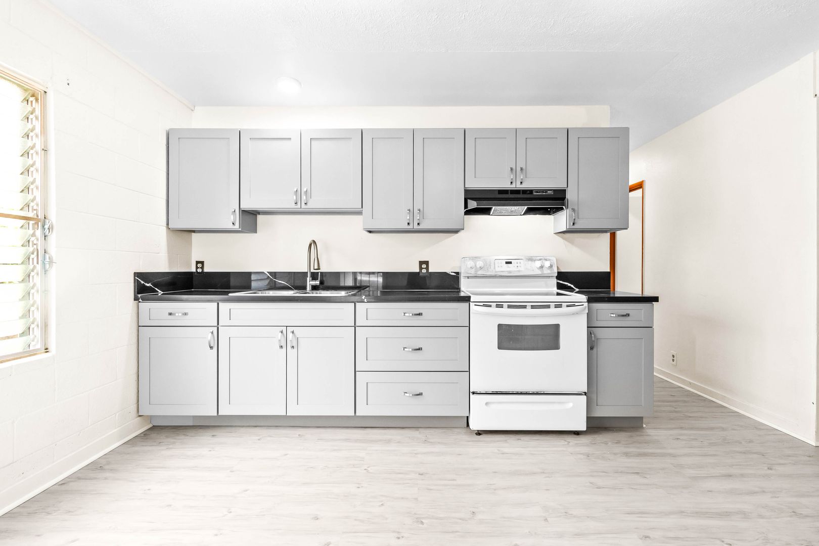 This 3 bedroom, 1 bath downstairs unit is renovated with new flooring, a new kitchen and fresh paint! 2 parking stalls. Conveniently located in Kalihi Valley.