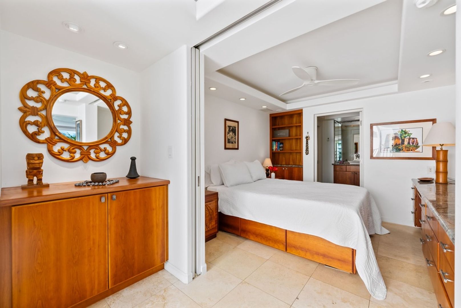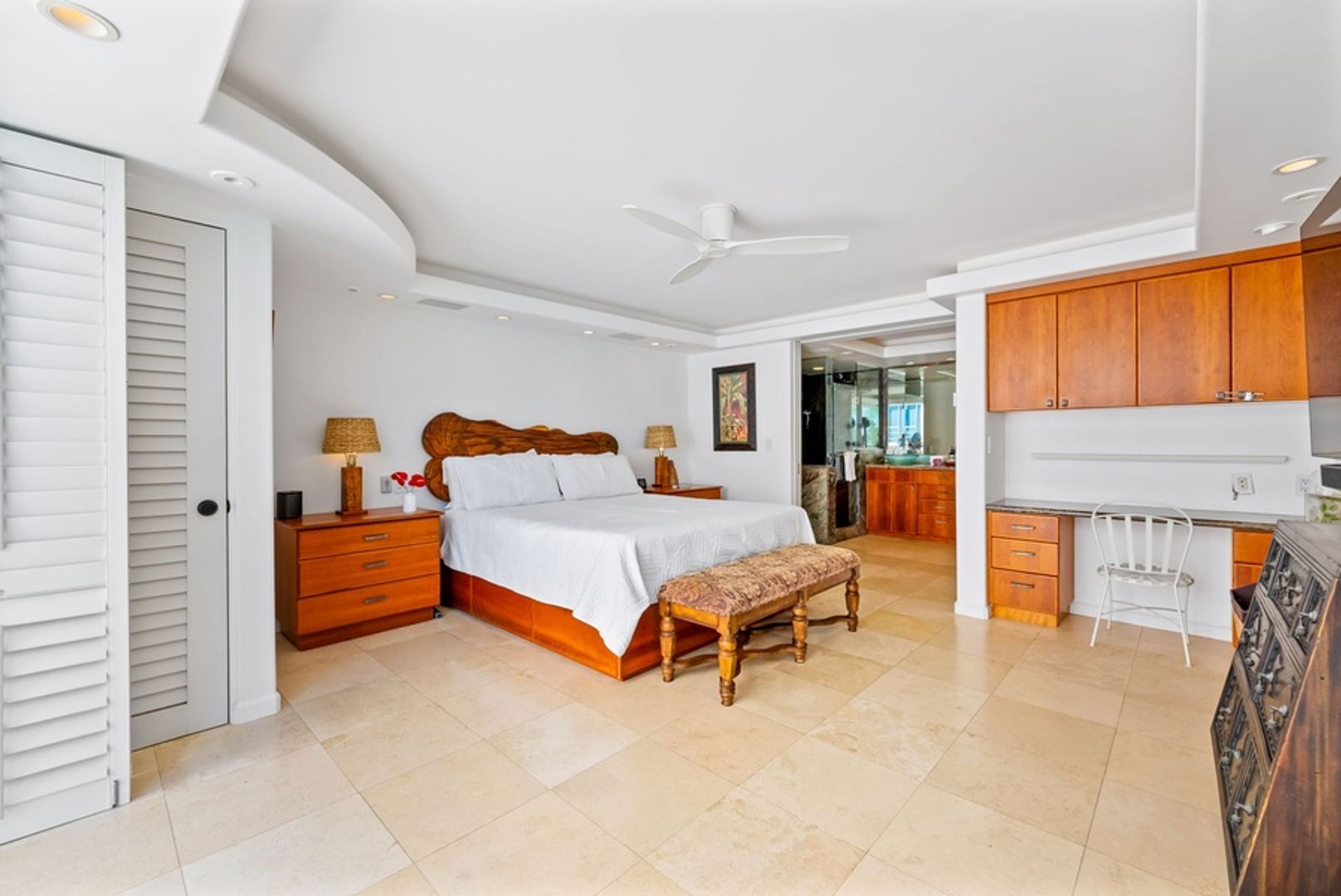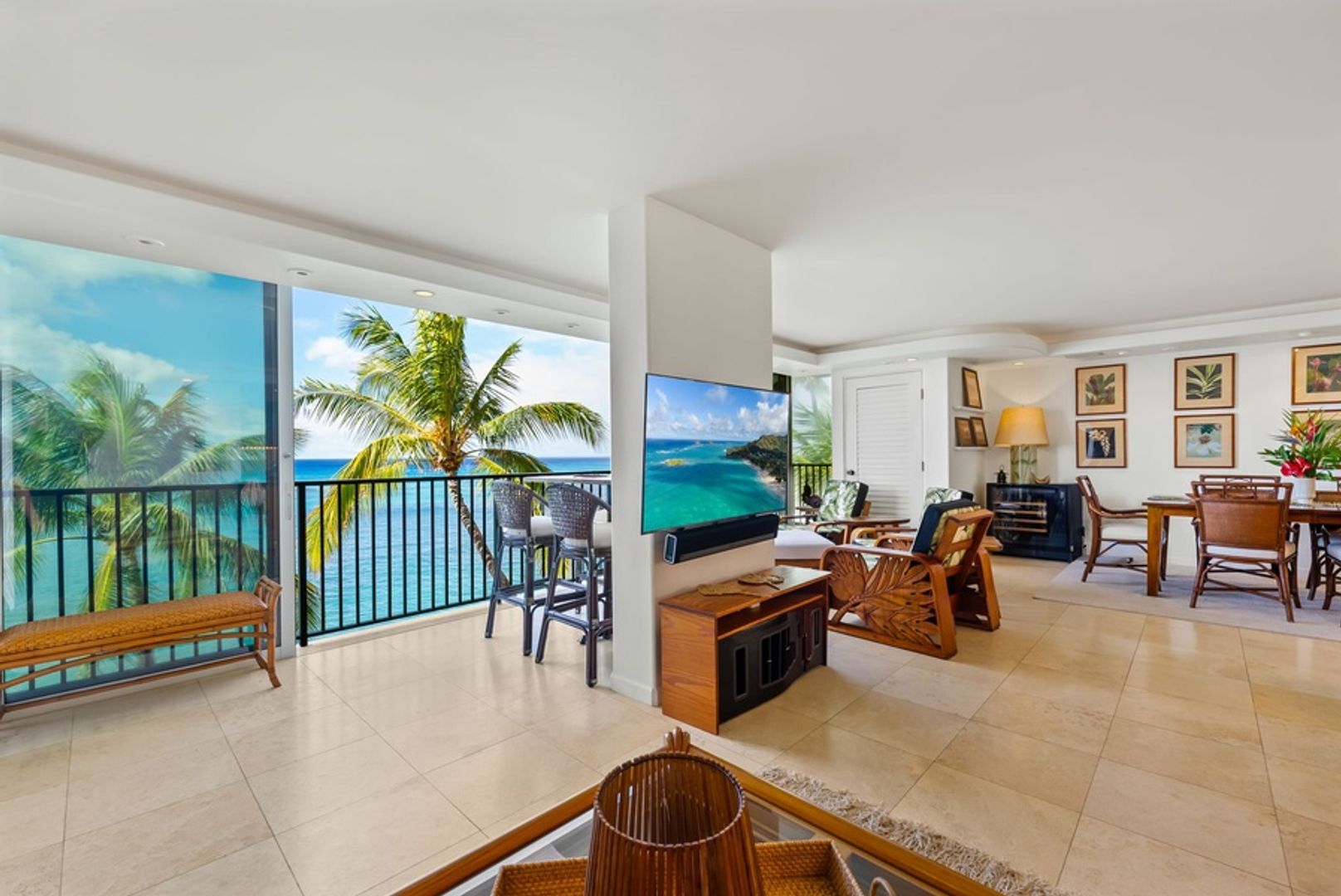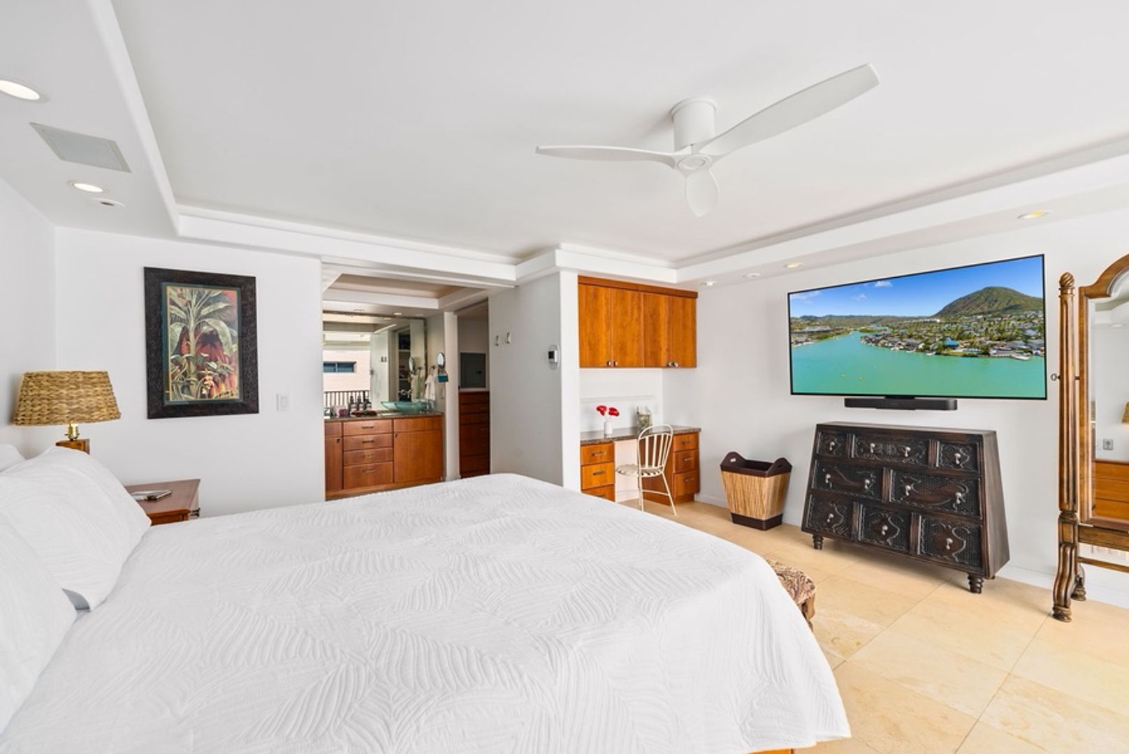 * Sophisticated Island Design: Dark wood accents and sandy tile floors echo the island’s contrasts, creating a refined and relaxing ambiance.