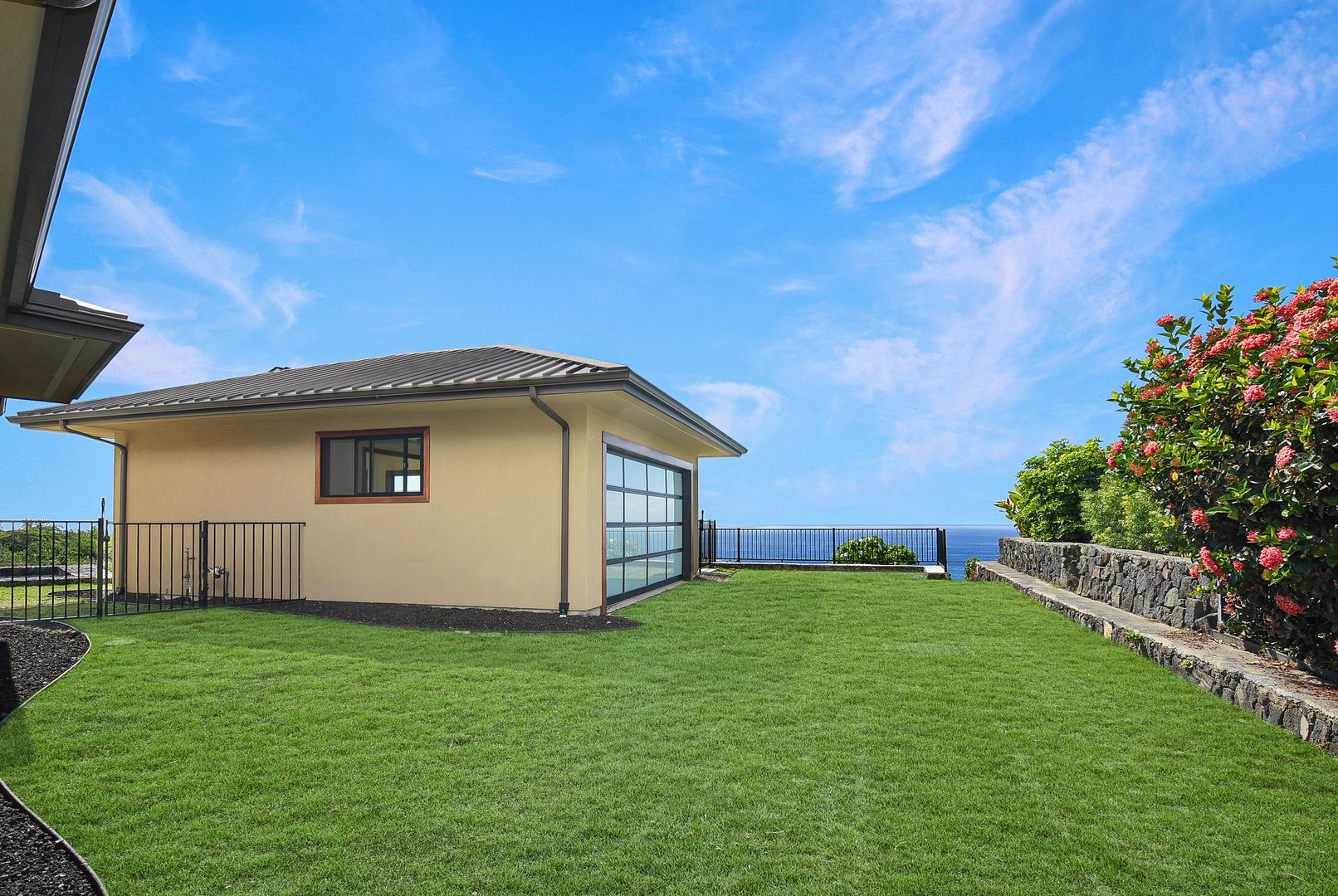 This home also features energy-efficient air conditioning for year-round comfort and a separate garage equipped with an electric car charger and ample storage. Nestled within Bayview Estates, this property offers privacy and tranquility while keeping you close to Kona’s finest beaches, dining, and shopping.