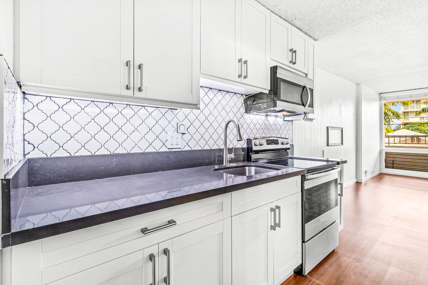 Great views of Diamond Head! Unit was recently renovated with new vinyl laminate flooring, painting, kitchen cabinets, kitchen appliances, bathroom vanity, etc. 2 big closets in bedroom! Spacious for a single or a couple with minimal items. Building amenities include community laundry, additional exterior storage on the same floor, secured entry and on-site resident manager! Building exterior was freshly painted in 2019 and all new rear facing windows were installed. Located minutes to downtown Honolulu, Punahou/Maryknoll Schools, University of Hawaii, Waikiki, Kakaako and Ala Moana. Minutes from major bus lines and Biki station! Parking will be a waiting list for $120/month, however plenty of street parking.