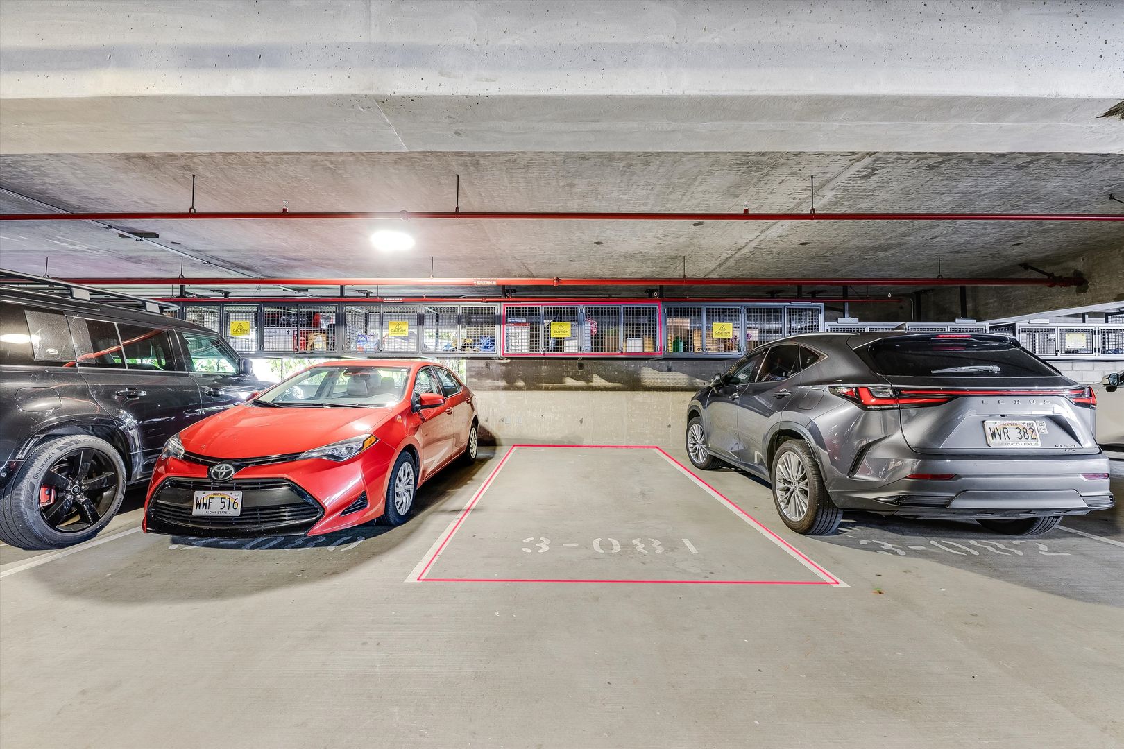 This stunning front-corner 2-bedroom, 2-bath condo. Fully furnished with sleek, space-saving design, this residence maximizes comfort and style. A rare find, this corner end unit is the most desirable 2-bedroom floorpan in the building, featuring in-unit washer/dryer, a walk-in closet in the primary suite, 1 parking stall with storage lockers above and an additional storage room in the building. Floor-to-ceiling windows flood the space with natural light, while high-end finishes and premium appliances enhance the contemporary appeal. Enjoy Penthouse-level amenities on Lanai 42, a full-floor oasis for relaxing and socializing, provide gorgeous 360° views of land and sea and a state-of-the-art fitness center and yoga studio. Additional resort-style amenities include private lounges, pool, spa, playground, dog park and BBQ cabanas. Live steps from world-class dining, shopping, movies and the vibrant urban lifestyle of award-winning Ward Village.